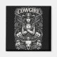 A fearless cowgirl crosses twin revolvers before a backdrop of roses, cards, and skulls in a bold Western outlaw portrait.