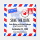 Um casamento criativo divertido Salve a data para enviar a todos os seus convidados anunciando seu casamento de destino. Design da Vibrant Blue e Vibrant Red Airmail com mapa da Itália desvaneceu-se ao fundo. Se você tiver um local diferente, envie um email para paula@labellarue.com ANTES QUE UM PEDIDO SEJA FEITO, para que um novo design possa ser criado para você.