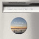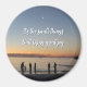 A photo showing a silhouette of a family playing in the ocean at sunset under a crescent moon, it's small moments like these that bring joy into our lives