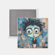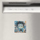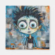 Um personagem caprichoso com olhos superdimensionados e cabelos eriçados é retratado com uma expressão atordoada sentado a uma mesa com uma xícara fumegante e uma torradeira excêntrica. Atrás do personagem, o fundo é animado, repleto de vários esboços e rabiscos que dão um tom lúdico e caótico à cena.