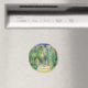 Magnet, com a pintura a óleo de Claude Monet O Jardim do Artista em Vétheuil (1880). Os girassóis e outras lindas flores azuis e vermelhas fazem um percurso no jardim onde as crianças estão dando um passeio agradável. Um presente de excelente para fãs do impressionismo e da arte francesa.