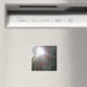 Imagem quadrada do Jardim do Sol. Única ímã personalizável de luz solar brilhando intensamente através de um jardim com árvores e flores.