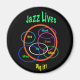 Para aqueles que amam jazz, este imã é uma celebração do melhor dos bebop e das eras do posto. Círculos coloridos de vermelho, azul, roxo, branco e turquesa encerram alguns dos músicos do excelente. Todos são ativados por textos amarelos e verdes sobre fundo preto puro.