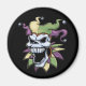 crânio de mau com grin grande de mau. Desenho original de caneta e tinta, com cores Mardi Gras digitais. T-shirts, suores, canecas, artigos de presente.