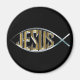 As palavras Jesus em ouro dentro de um símbolo de peixe. frontiernow.com