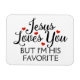 Jesus te ama, mas eu sou o favorito dele. Humor Cristão Dizendo. Slogan Religioso Engraçado. Com pequenos corações vermelhos.