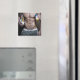 Este ímã apresenta uma fotografia focada nas seis malas de abdominais de uma academia sexy.