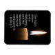 O ímã de escritura inspiracional retrata um fundo preto com uma vela brilhante. Ele apresenta a Bíblia Verse John 1:5 "A luz brilha na escuridão, e a escuridão nunca pode extingui-la."-