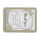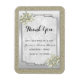 Lindo, sofisticado e elegante ímã de agradecimento de lembrança de casamento com um fundo brilhante dourado, uma moldura prateada elegante em uma borda prateada com lindas decorações de flores decoradas com pérolas nos cantos, tudo sobre um fundo de damasco branco cheio de espirais e floreios. Um design romântico, elegante e sofisticado para o seu dia especial. Todo o texto é totalmente personalizável para atender às suas necessidades, se você precisar de ajuda para personalizar seu produto ou quiser produtos combinando, por favor entre em contato comigo através da minha loja e ficarei muito feliz em ajudá-lo.