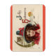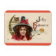 Uma bela e vintage fotografia de uma bruxa menina, com uma coruja, aparece neste ímã de Halloween. Com a mensagem "Jolly Halloween", isto faz uma decoração de Halloween excelente ou um belo, pequeno presente!