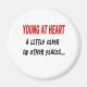 Magnet com uma frase de texto engraçada que diz: "Jovem de coração...um pouco mais velho em outros lugares". Claro que tenho muitos olhares, comentários e risos.