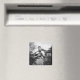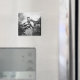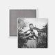 Um jovem segurando um gato é uma fotografia adorável neste ímã. Claro que parece excelente naquela geladeira.