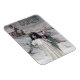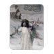 Um postal de Natal francês vintage do dominio público. Ele apresenta uma garota vestida de presentes de carregando anjo de Natal.
