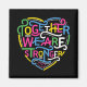 Esta trabalho de arte apresenta uma frase que nos encoraja a lembrar que somos mais fortes juntos.