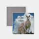 Fotografia de um canguru macho contra o céu azul e nuvens brancas fofinhas. O texto personalizável diz, "companheiro do dia".