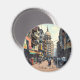 Ilustração de desenho animado de Kolkata, Índia Um imã com ilustração de movimentada rua de centro com prédios, restaurantes, compras e pessoas em suas motos.