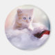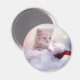 Design apresenta uma fotografia de um gatinho fofo com um chapéu de Natal.