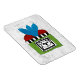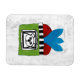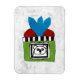 Um pequeno e engraçado desenho de coala sobre formas abstrato ousadas em vermelho, azul e verde com faixas pretas e brancas.