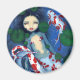 Koi Pond Mermaid - uma bela sereia com uma cauda muito parecida com um peixe koi, emergindo ligeiramente do lago com vários amigos de peixes koi nadando ao seu redor. Eu adoro tanto esta pintura. Minha própria pintura acrílica original.
