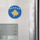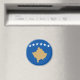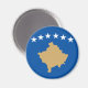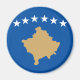Bandeira do Kosovo. A bandeira da República do Kosovo foi adotada pela Assembleia do Kosovo imediatamente após a declaração de independência da República do Kosovo em relação à Sérvia, em 17 de fevereiro de 2008. A bandeira é o resultado de uma competição internacional de design, organizada pela Equipe de Unidade do Kosovo, apoiada pelas Nações Unidas, que atraiu quase mil inscrições. A design é uma variante de uma proposta projetada por Muhamer Ibrahimi. Mostra seis estrelas brancas num arco acima de um ouro do Kosovo num campo azul. Eles simbolizam os seis principais grupos étnicos do Kosovo.