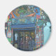 Cena de rua colorida no bairro La Boca, do fabuloso Buenos Aires. Possui um homem bem vestido em frente a uma loja multicolorida. A moto ao lado o aguarda.