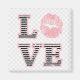 Este design apresenta um conjunto pastel de lábios e AMOR em um padrão listrado preto e branco.