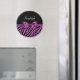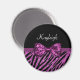 Sua adolescente se sentirá imersa em luxo feminino com este ímã de impressão de zebra com brilho roxo e preto de designer chique e uma fita de brilho em lantejoulas amarrada em um laço luxuoso. Personalize este design de moda de impressão animal com brilho e glamour adicionando seu nome. Imagem impressa plana, não brilho ou fita real.