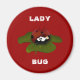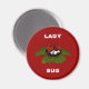 Imã de geladeira de Ladybug em vermelho com uma foto de uma ave-de-joia em uma folha com a palavra ladybug em branco