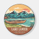 O lago Lanier desenhou a ilustração com canoa, tendas e montanhas ao fundo. Perfeito para quem ama visitar o lago Lanier.