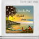 Um ímã romântico com uma paisagem costeira com uma árvore florida e borboletas coloridas no pôr do sol. Bonita como Imã salve a data e personalizável para outras situações.