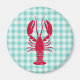Magneta divertida que vai com todo tipo de temas de decoração costeira e de verão! Design apresenta uma silhueta de lagosta vermelha sobre fundo de gingham azul