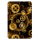 Sem costura, metal, latão, engrenagens douradas sobre fundo escuro enferrujado. Estilo Steampunk.