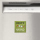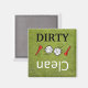 Um ímã de máquina de lavar louça verde com uma teta de golfe vermelha e uma bola de golfe com palavras dizendo que suja e limpa faz um belo pote de máquina de lavar louça
