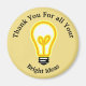 Este ímã oferece à sua empresa uma maneira barata de dizer "obrigado" aos seus empregados valiosos. Este chaveiro exibe uma lâmpada amarela brilhante cercada de palavras de apreciação contra um fundo amarelo pálido. "Obrigado por todas as suas ideias brilhantes" pode ser facilmente personalizado de acordo com as necessidades da sua empresa.