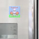 Um ímã com minha trabalho de arte de um carneiro com cestos de ovos de Páscoa e flores coloridas brilhantes. O texto diz "Felz pascoa!"