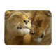 Magnet mostrado com uma impressão de foto de um casal de lindos leões. Personalize este item ou comprar como está. Imagem do stock