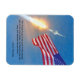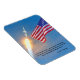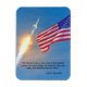 A bandeira americana anuncia o voo da Apolo 11, a primeira missão de aterrissagem lunar, com os astronautas Neil Armstrong, Michael Collins e Edwin Aldrin no dia 16 de julho de 1969, do Centro Espacial Kennedy. Também está incluída uma citação do discurso inspirador do Presidente Kennedy na Universidade Rice "Nós escolhemos ir à lua nesta década e fazer as outras coisas, não porque elas sejam fáceis, mas porque elas são duros."