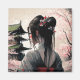 Gera computador Design einer Geisha. Abbildung einer Frau mit einer hübschen Frisur und Blüten im Haar welche einen Kimono trägt in einem schlichten Design mit leichten Linien. Japoneses Design im AI - Estilo de Meia-Viagem. Rote Farbornamente verleihen dem Bild das gewisse etwas.