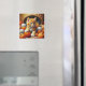 Um gatinho listrado de laranja doce brincando num cesto de bolas de fio de laranja e branco. Ímanes bonitos para amantes de gatos.