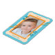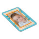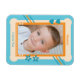 Imã de foto de presente da mamãe. Laranja e azul, com flores, corações e listras. Mamãe, eu te amo