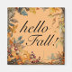 Saudações à época de outono com novo mago ktichen! Projetado com o texto "Olá, Queda!" cercado por uma borda de folhas, bagas e vinhas em forma de coordenação de todas as cores do outono. Um pequeno presente divertido para a nova casa de alguém!
