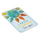 Design Largo Flórida brilhante, colorido, aprovado 100% pela Sunshine. Cores quentes de vermelho, laranja, turquesa e aqua em um padrão de cor d'água em um bonito fundo azul sombreado.
