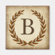 Uma delicada coroa de louros é colocada sobre um fundo de papel antigo no estilo clássico romano. Esta design é personalizada com o monograma "B" em tom siena rico.