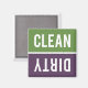 Ímanes de lavadora de louça púrpura, verde-oliva e branca e suja. Apenas reverta ou sacudir o ímã para limpar ou sujar na frente da máquina de lavar louça para informar sua família sobre o dentro de pratos. Design simples moderna.