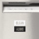 Magneta de máquina de lavar louça limpa/suja em preto, branco e prata.