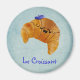 Croissant francês bonito. Este é um croissant francês clássico, mas não o habitual. Hetero fresco e crocante da padaria francesa de Paris. Mas quando você vê seu sorriso e bigode rico com berço azul, você simplesmente sabe que é um típico francês. Cute Kawaii Croissant é o melhor design para qualquer fã do café da manhã francês.