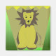 Um design divertido com um leão da selva. Uma máquina de espiões sobre fundo verde e castanho.