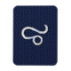 Um cromo prateado como o símbolo Leo Zodiac em um fundo de impressão de fibra de carbono azul marinho. Um design moderno urbano para uma ideia personalizada de presente de aniversário de excelente. Use o link "Perguntar a este Designer" para entrar em contato conosco com suas solicitações especiais de design ou para obter assistência com suas necessidades de personalização.