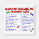 Crie uma risada, ou duas, com nossos humorísticos direitos de propriedade ALASKAN MALAMUTE, presentes, camisetas, camisetas, roupas e mercadorias. Essas engraçadas, e tão verdadeiras, regras para cães são certamente um sucesso com qualquer dono de ALASKAN MALAMUTE. Faz uma ideia ideal para aquele duro-a-pegar para o Alasskan MALAMUTE Lover na sua lista!