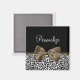 Qualquer moça de moda feminina sofisticada adoraria que seu nome fosse personalizado neste tenente ímã de impressão leopardo preto e branco com uma elegante fita marrom escura amarrada em um arco chic. Imagem impressa plana, não fita real.